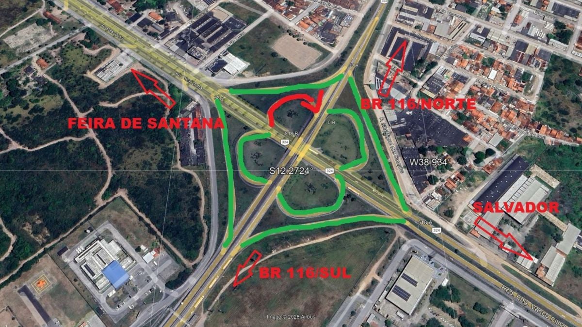Segundo o Departamento Nacional de Infraestrutura de Transportes (Dnit), órgão que administra a BR-324, será feito o bloqueio total da alça 518B, no sentido de quem trafega na pista Salvador-Feira de Santana para acessar a BR-116 Sul (Vitória da Conquista-Rio de Janeiro).